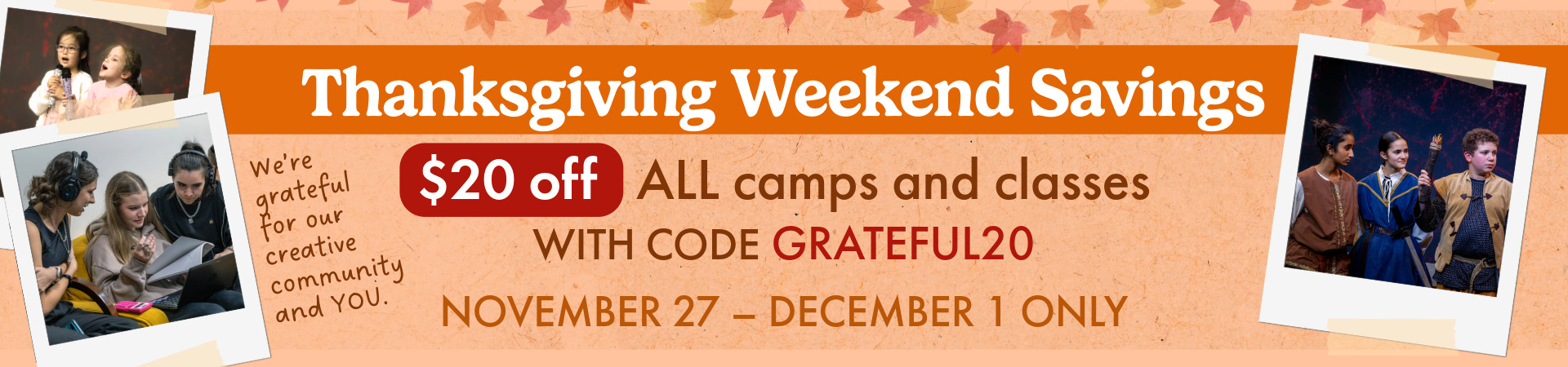 Build confidence, creativity, and friendships through classes in acting, singing, dance and more.